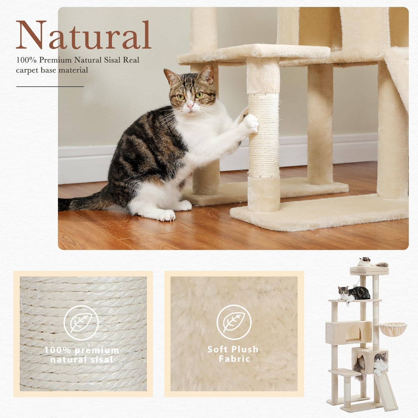 60.62 Inches Multi-Level Cat Tree Cat Tower For Indoor Cats With Sisal-Covered Scratching Post, Cozy Cat Condo, Padded Top Perch For Indoor Cats - Grey